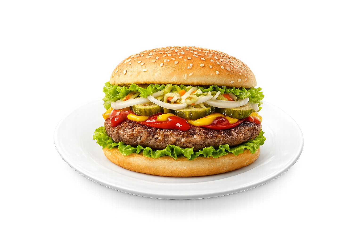 (hambihus, saláta, ubi, pari, hagyma, csalamáde, mustar, ketchup)